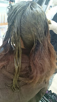 根元の色から、ヘナが塗られているところは、黒っぽい色でした。